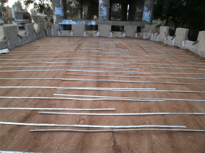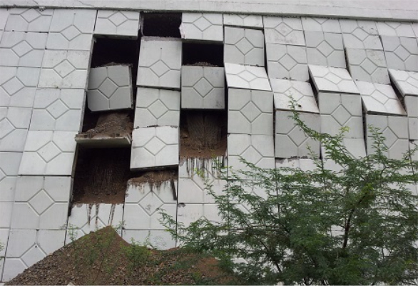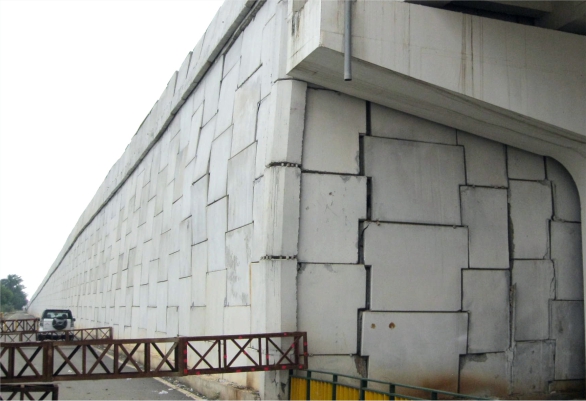This Reinforced Soil wall system has precast RCC panel weighing around 1.1 tons forming the facing with geogrid soil reinforcement. Ideal for locations where soils to be used as backfill have a relatively lower frictional properties and the project owner desires specific architectural look.